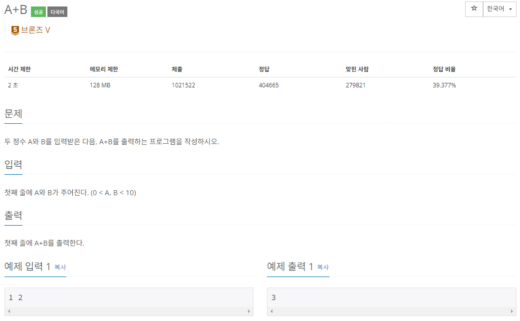 두 정수 A와 B를 입력받은 다음, A+B를 출력하는 프로그램을 작성하시오.