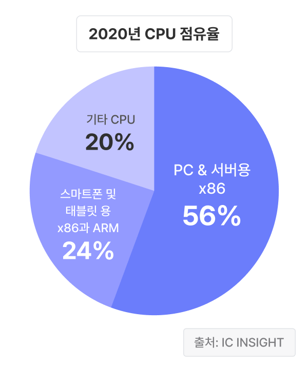 - 대표적: ARM, MIPS, AVR, 인텔의 x86 및 n86-64 등이 있다.