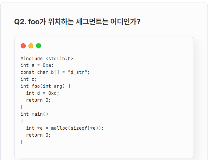 - 'foo'는 '코드 세그먼트'에 위치한다.