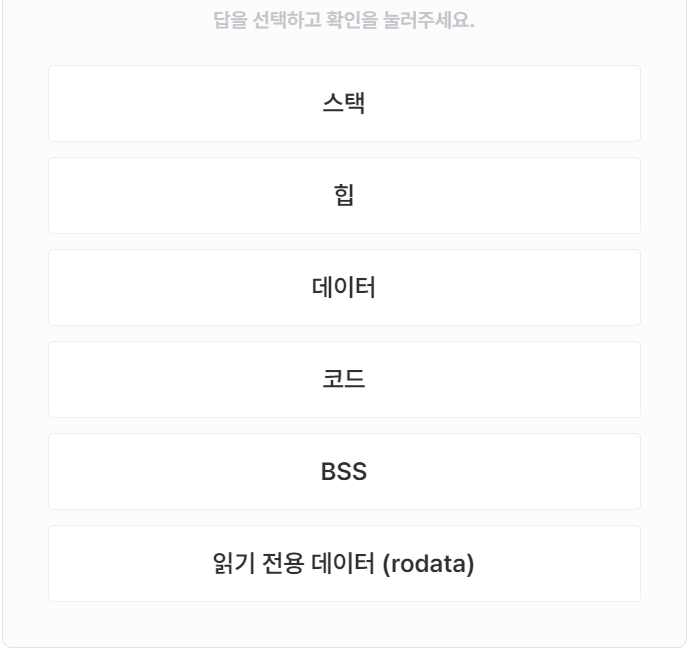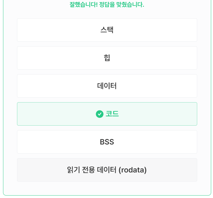 - '코드 세그먼트': 실행가능한 기계 코드가 위치하는 영역