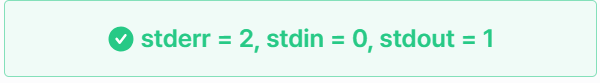 - stderr=2, stdin=0, stdout=1
