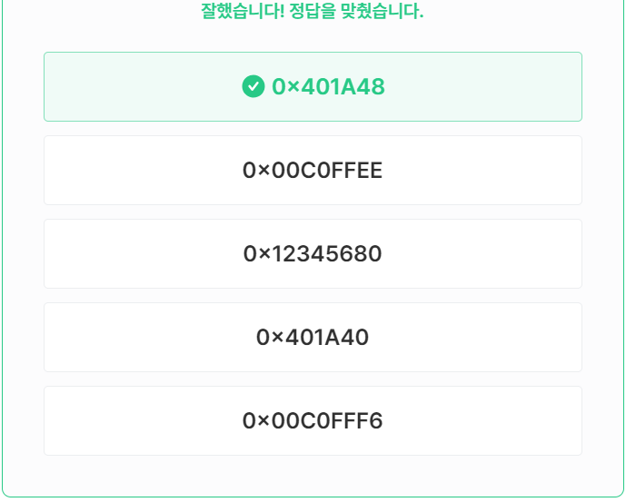 - 'rbx+8'('0x401a48')의 값을 'rax'에 저장한다.