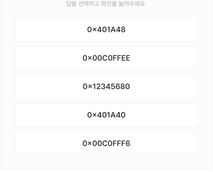| [Dream hack] Quiz: x86 Assembly 1-4 (0) | 2024.05.17 |