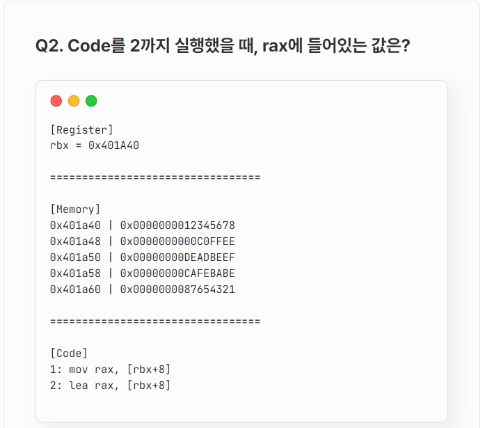 | [Dream hack] Quiz: x86 Assembly 1-1 (0) | 2024.05.16 |
