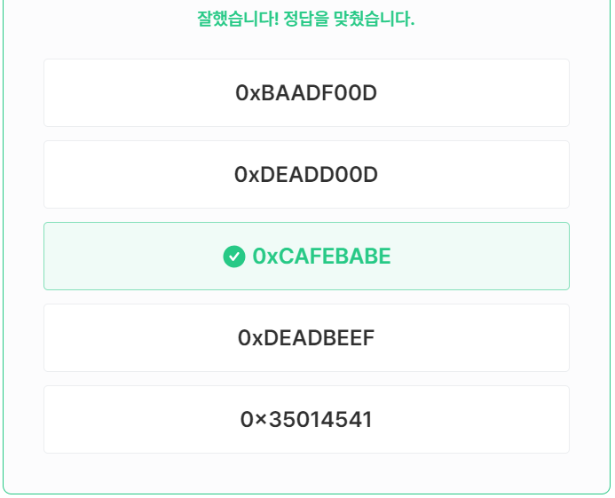 | [Dream hack] Quiz: x86 Assembly 1-10 (0) | 2024.05.18 |