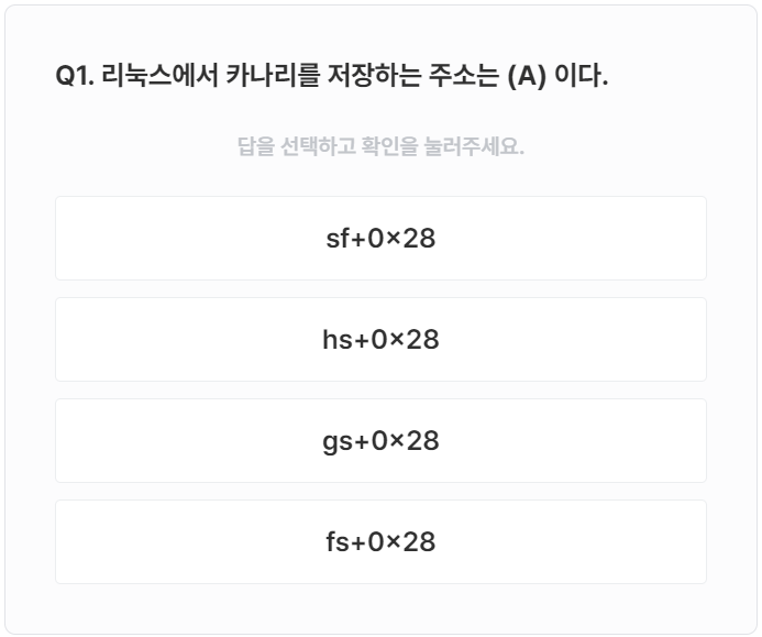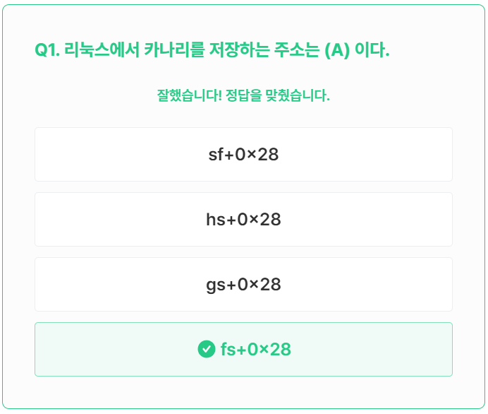 - 카나리 값은 TLS에 전역변수로 저장된다.