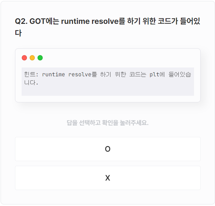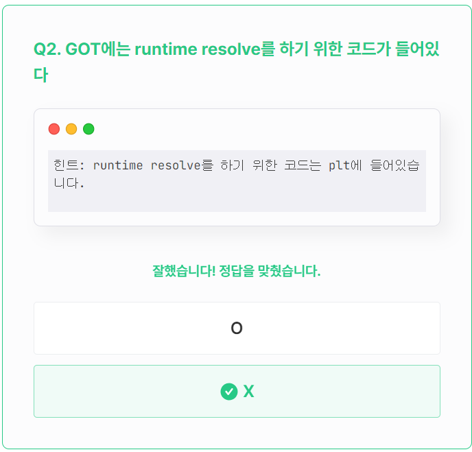 - GOT: 동적 라이브러리 함수의 실제 주소를 저장