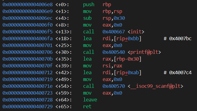 이부분을 보고 buf의 크기가 0x30만큼 차지한다.