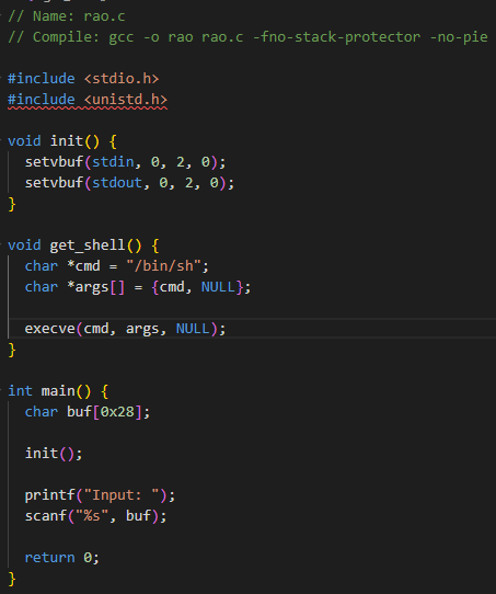 버퍼 오버플로우 이용해서 return adress에 get_shell의 주소를 넣어주면 될것 같다.