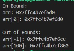 먼저 컴파일러(gcc)는 배열의 범위를 벗어나는 -1,100을 인덱스로 썻는데 error가 없다