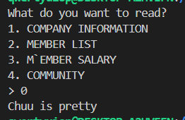 char *docs[] = {"COMPANY INFORMATION", "MEMBER LIST", "MEMBER SALARY",