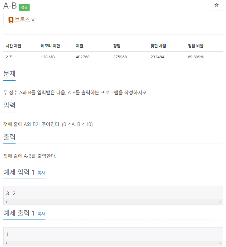 두 정수 A와 B를 입력받은 다음, A-B를 출력하는 프로그램을 작성하시오.
