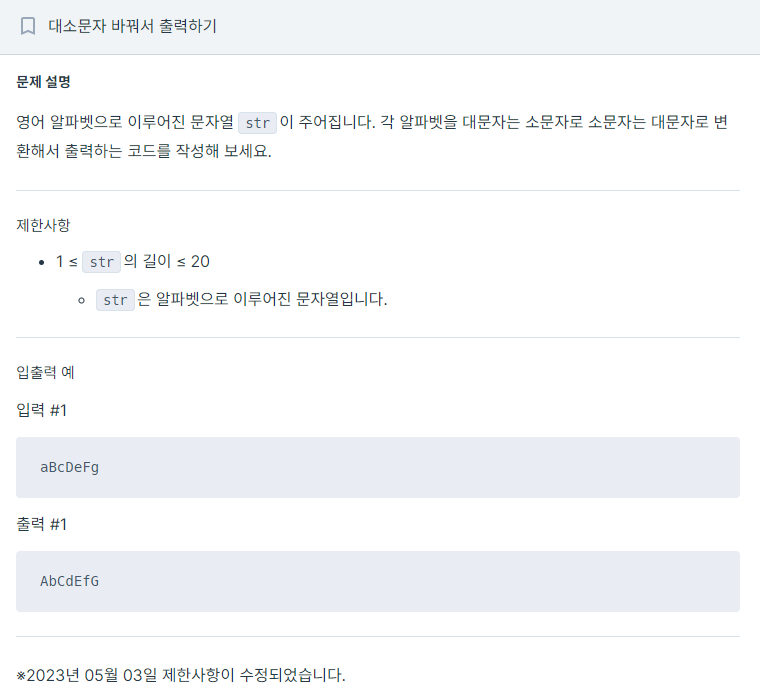 그래서 입력된 문자가 대문자면 32를 더해서 소문자가 출력되게 하고