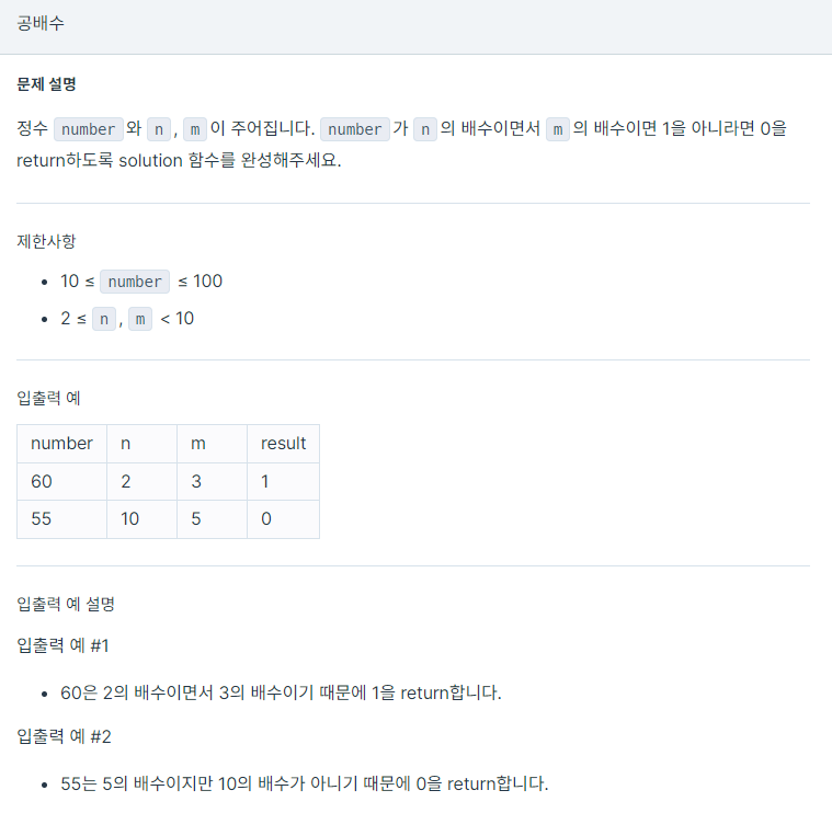 number이 n과 m으로 나누었을때 모두 나머지가 0이라면