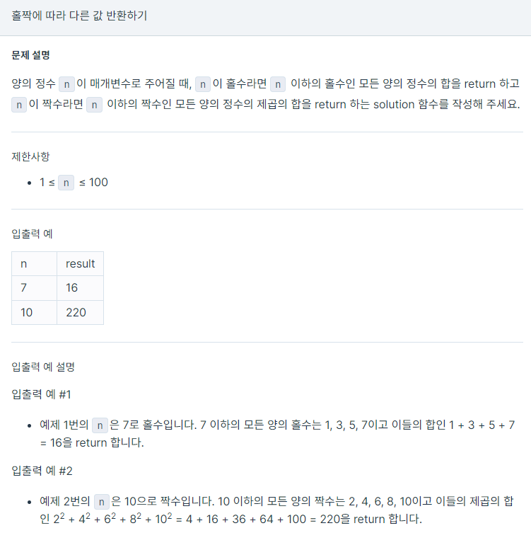 n이 짝수 일때는 짝수인값을 제곱해서 더해준다.
