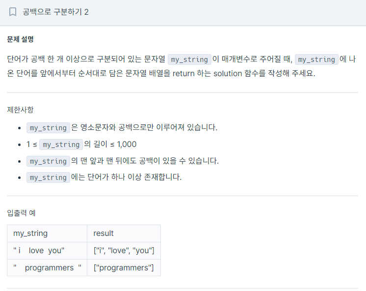예를들어, "hello world"라는 문자열이 있으며 "hello"와 "world"라는 두 개의 문자열을 벡터에 저장하고 반환한다.