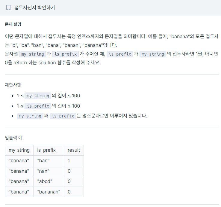 다르면'is_prefix'는 'my_string'의 접두사이므로 'result'를 1로 한다.