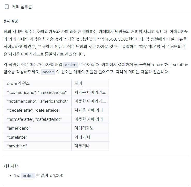 이 문제를 풀때 아메리카노 였을 떄를 기준으로 해서 if문을 작성하였는데